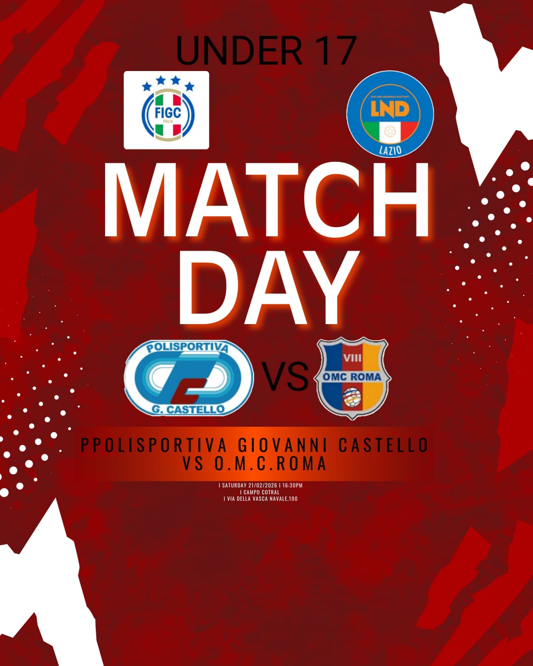 G.Castello – O.M.C. , Sabato ore 16.30 Campo Rocco Picarella – Via Mario Ageno, snc