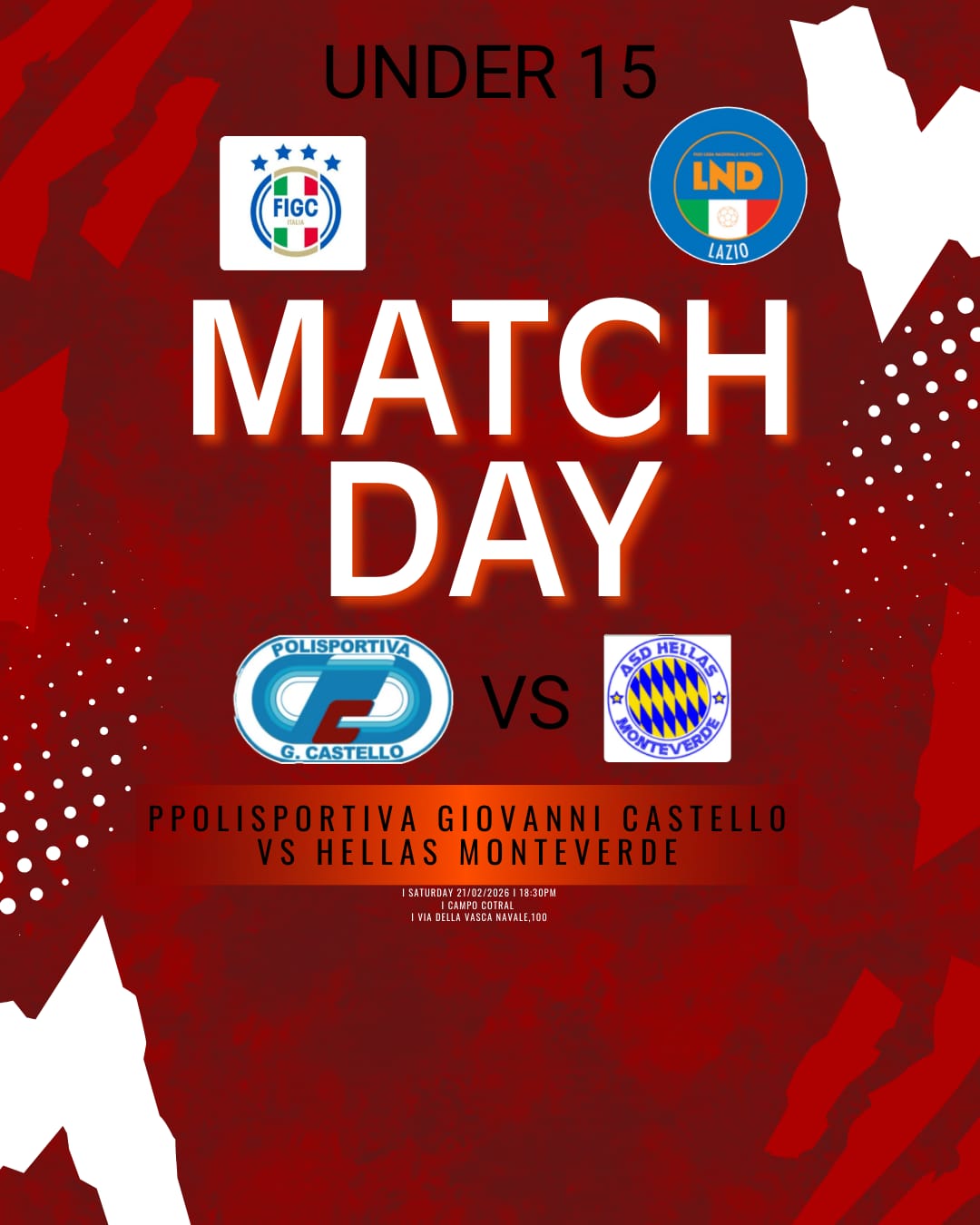 G.Castello – Hellas Monteverde, Sabato ore 18.30 Campo Rocco Picarella – Via Mario Ageno, snc